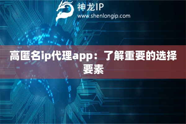 高匿名ip代理app:了解重要的選擇要素