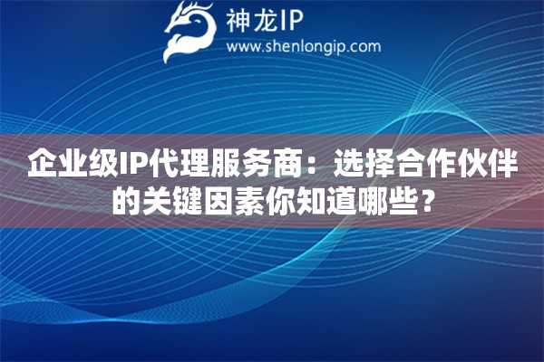 企業(yè)級IP代理服務(wù)商:選擇合作伙伴的關(guān)鍵因素你知道哪些?