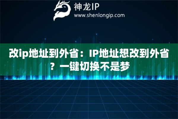 改ip地址到外?。篒P地址想改到外省?一鍵切換不是夢