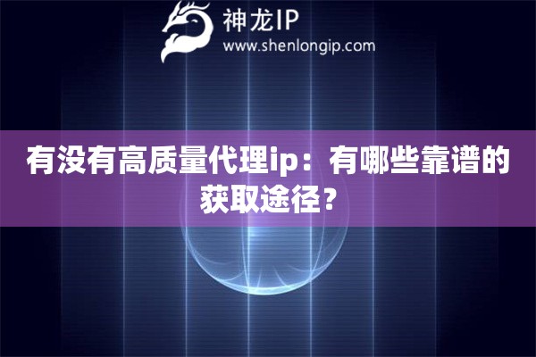 有沒有高質(zhì)量代理ip:有哪些靠譜的獲取途徑?